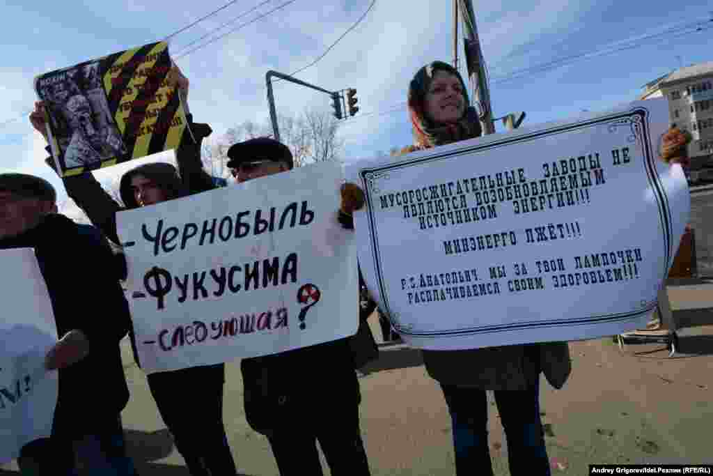 Сегодня, в годовщину АЭС в Фукусиме, участники акции в парке Тинчурина напомнили о том, что у нас, в Татарстане, своя угроза. Точнее, даже две. Первая – возможное строительство АЭС в Камполянах. Разговоры о возобновлении замороженного в 1990-х проекта начались некоторое время назад. Вторая – строительство мусоросжигательного завода в Казани. Это строительство, в отличие от АЭС, вопрос уже решенный и начнется вот-вот, если его не удастся остановить в последний момент, как это уже делали жители других российских городов.