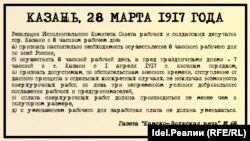 3) Что 8 часовой рабочий день в настоящее время уже проведен в Петрограде, Москве и других городах, а также во всех технических и артиллерийских заведениях военного ведомства, Совет рабочих и солдатских депутатов г. Казани постановил: