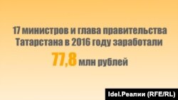 77,8 млн рублей заработали министры Татарстана в 2016 году. Именно такую сумму в общем задекларировали они в рамках ежегодной кампании по раскрытию доходов чиновников и депутатов в России.
