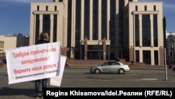 Вкладчики инвесткомпании "ТФБ Финанс" — дочки обанкротившегося Татфондбанка — продолжают серию одиночных пикетов напротив здания правительства республики. Они требуют, чтобы власти обратили внимание на судебные разбирательства по включению их в реестр Агентства по страхованию вкладов и на саму ситуацию с доверительным управлением.