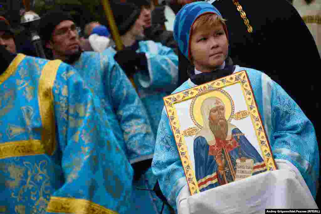 Главное богослужение в честь праздника состоялось утром в Благовещенском соборе Казанского Кремля. Оттуда участники крестного хода двинулись традиционным уже маршрутом вокруг Кремля, чтобы завершить шествие в Крестовоздвиженском соборе — считается, что в месте, на котором стоит храм, и была обретена в 1579 году Казанская икона Божьей матери.