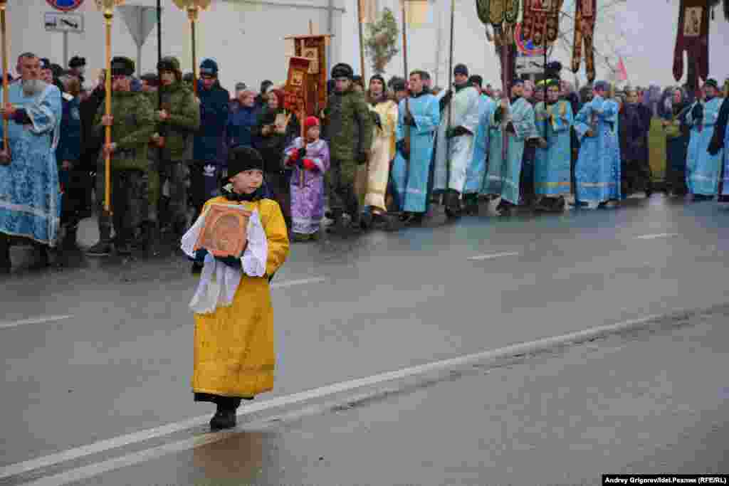Главное богослужение в честь праздника состоялось утром в Благовещенском соборе Казанского Кремля. Оттуда участники крестного хода двинулись традиционным уже маршрутом вокруг Кремля, чтобы завершить шествие в Крестовоздвиженском соборе — считается, что в месте, на котором стоит храм, и была обретена в 1579 году Казанская икона Божьей матери.