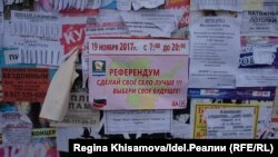 Неподалёку от участка, на автобусной остановке, висел, видимо, ранее наклеенный плакат с призывом приходить на референдум. В правом нижнем углу листовки значился единственный вариант ответа с галочкой напротив: "ДА".
