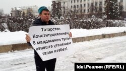 Сегодня, 8 декабря, активист "Союза татарской молодежи Азатлык" Батырахан Агзамов вышел на одиночный пикет напротив здания правительства Татарстана с требованием соблюдения 8 статьи Конституции республики, где отмечено равноправие двух государственных языков — татарского и русского. Об этом он сам рассказал "Idel.Реалии".