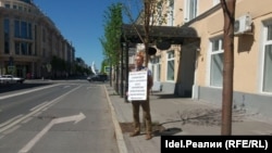 Сегодня казанский активист, социолог Искандер Ясавеев вышел на одиночный пикет напротив приёмной президента России в Татарстане с лозунгом: "Хватит смертей! Освободите Олега Сенцова и всех украинских политзаключённых".