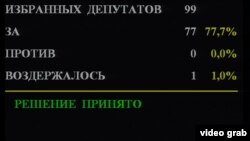 Из 78 депутатов, присутствовавших на сессии, только один по этому вопросу воздержался. 77 голосовали за то, чтобы не поддерживать федеральный законопроект.