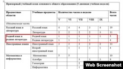 Для 5-9-х классов предлагается два варианта учебной программы. В обоих из них предметам "родной язык" и "родная литература" отводится по одному уроку в неделю. В одном из вариантов в 9 классе урока "родная литература" нет вообще.