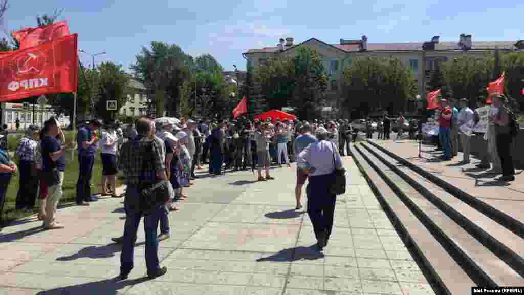 На окраине Казани — в посёлке Дербышки — татарстанское отделение КПРФ провело митинг против повышения пенсионного возраста
