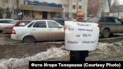 Правозащитник пояснил, что эту информацию ему сообщили собственные источники, которые он не вправе раскрывать. По имеющейся у движения "За права человека" информации, в ИК-9 произошло два суицида: один заключенный повесился, второй вскрыл вены. В связи с этим сегодня правозащитник Игорь Топоров вышел с одиночным пикетом к управлению ФСИН по Ульяновской области с обращением на плакате к ВРИО начальника ведомства Дмитрию Чурикову: "Чуриков! Что произошло на ИК-9? Опять убийства?".