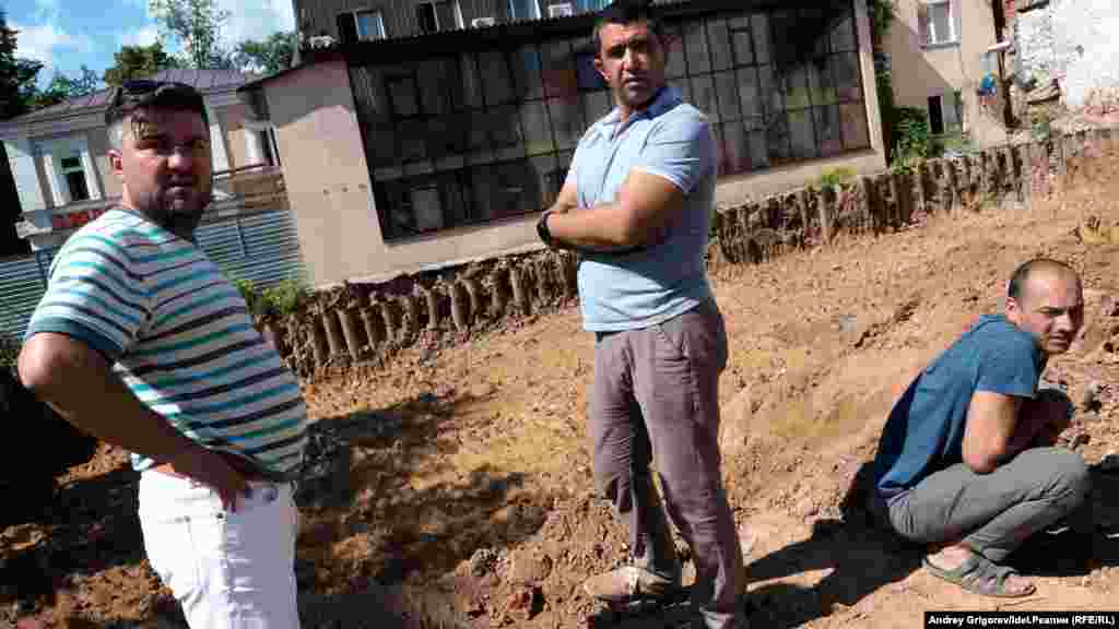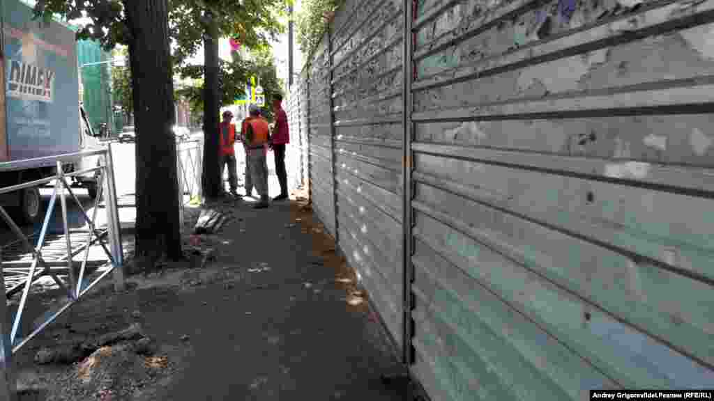Забор со стороны обеих улиц обклеен афишами. Аншлага, информирующего казанцев о том, какие работы здесь ведутся и какова их конечная цель, ни на воротах, открытых нараспашку, ни на ограждении нет. Неофициально представители застройщика (наименование компании — скрывают) говорят, что это, мол, и не стройка никакая, а подготовительные работы.