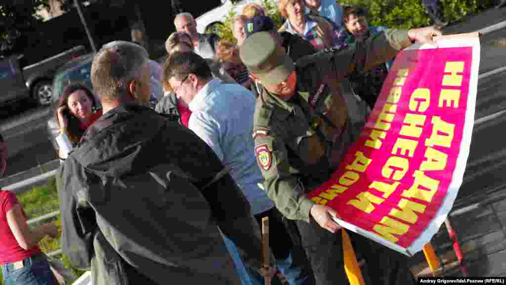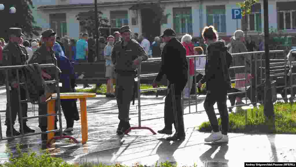 В любом случае власть готовилась к митингу не менее серьёзно, чем протестующие: на подъездах к скверу у ДК Саид-Галеева притаилось несколько автозаков, а саму площадку обнесли ограждением, выставив на двух входах сотрудников батальона "Рысь", которые досматривали не только сумки и рюкзаки, но и плакаты, которые вносили с собой митингующие.