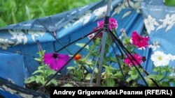 Покрышки — самый доступный для благоустройства материал, объясняет она, и самый антивандальный. Например, вазоны, на которые ТСЖ потратилось год назад, попросту кто-то украл. Новые бетонные, рассказывает Светлана, пришлось заказывать на Урале. Оттуда даже с доставкой вышло дешевле, чем у казанских фирм. Вот и приходится использовать для ландшафтного дизайна разные неожиданные предметы. Например, одну клумбу в ТСЖ изготовили из старого зонта. Идею, кстати, подсмотрели на цветочном фестивале у кукольного театра.