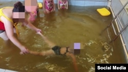 Снимки воспитанников детсада "Улыбка", плавающих в мутной жиже,