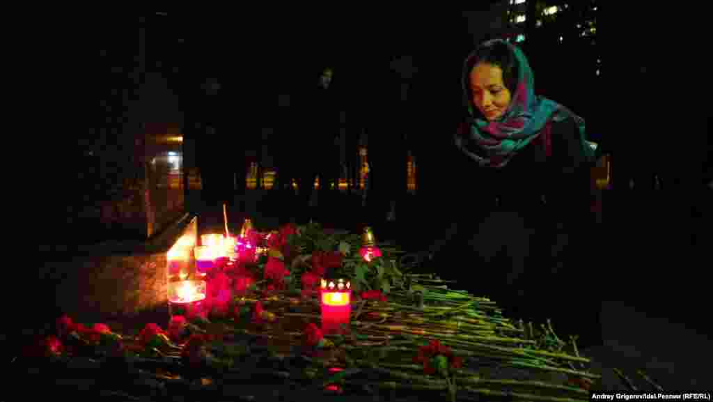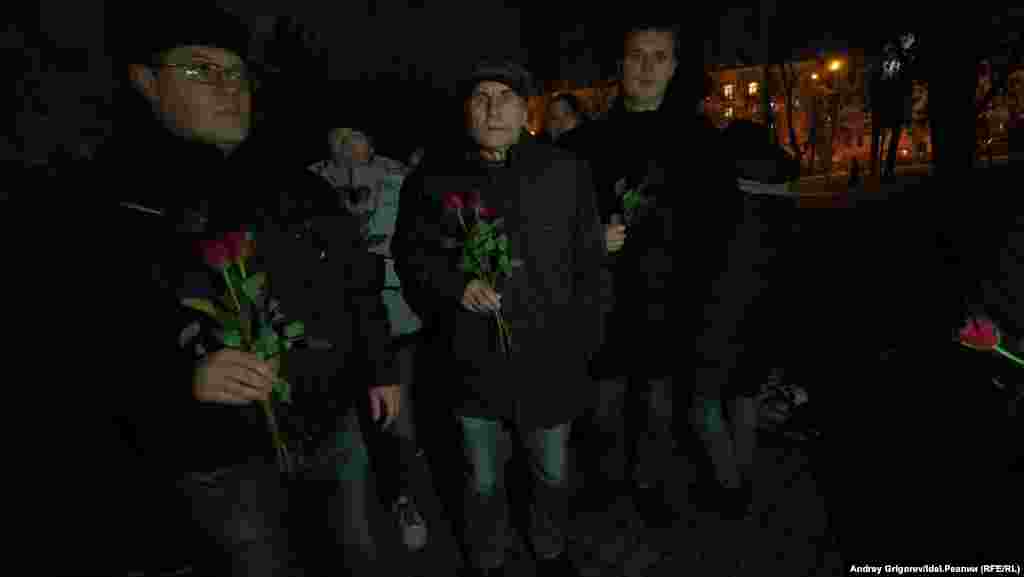 День памяти жертв политических репрессий в Казани завершился традиционным возложением цветов у памятника жертвам репрессий в Ленинском садике. В семь вечера здесь собралось около сорока участников акции.