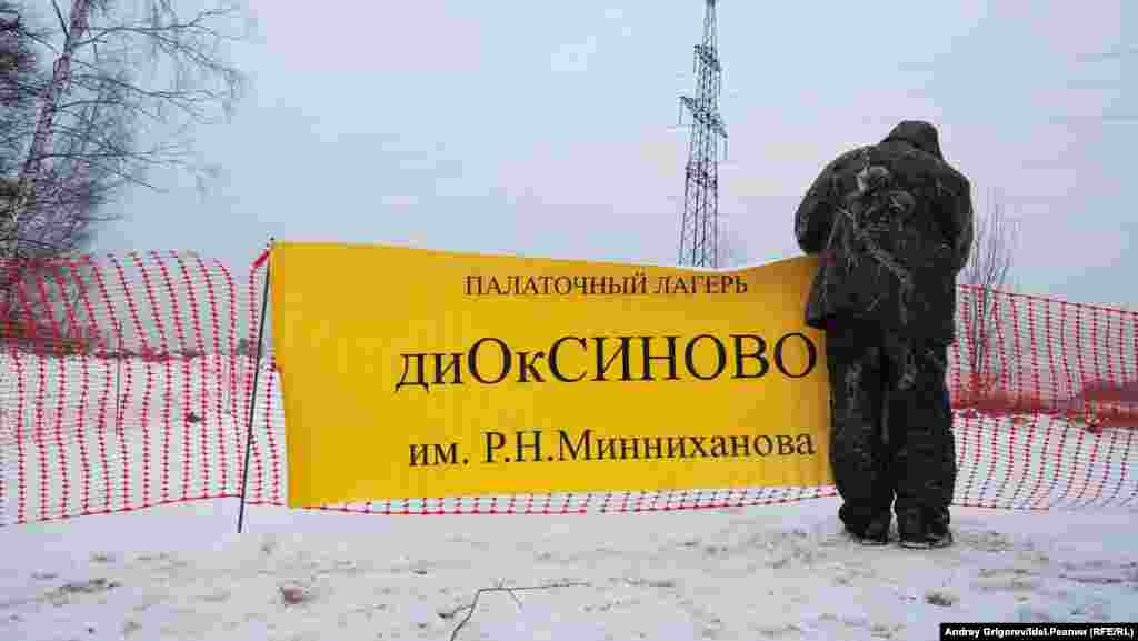 Экоактивисты и местные жители продолжают дежурство в лагере, который сменил имя с Казанского Шиеса на "палаточный лагерь Диоксиново им. Р.Н.Минниханова". Об этом возвещает баннер, прикрепленный к ограждению, ранее установленному строителями. Подробнее о причинах разбивки лагеря и сопровождавших её событиях можно прочесть здесь и здесь.