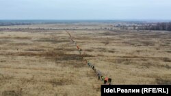 Сегодня, 8 декабря, во Владимирской области более трехсот человек провели флешмоб против строительства трассы М12 "Москва–Казань" через деревни. Они выстроились в линию по планируемому маршруту трассы и выложили своими телами слово SOS. Об это "Idel.Реалии" рассказали сами организаторы.