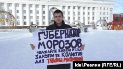 Сегодня ульяновский правозащитник Дмитрий Старчиков вышел к зданию дома правительства с одиночным пикетом в защиту Татьяны Мастрюковой из Димитровграда.