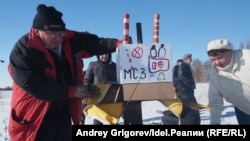 В воскресенье, 1 марта, активисты из посёлка Займище проводили зиму традиционным сжиганием чучела на берегу Волги. Чучело символизировали две сколоченные крест-накрест доски и венчающая их фотография человека, похожего на министра экологии РТ Александра Шадрикова. Кто именно привязал её к воткнутой в костёр доске, так и осталось невыясненным: когда корреспондент "Idel.Реалии" вместе с жителями Займища и активистами из Казани спустился из посёлка на берег, листок с портретом уже трепыхался на ветру.