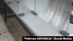 В столовой АВТОВАЗа столики, где работники принимают пищу, разделили противошумными листами на ячейки. С помощью этого новшества намерены исключить воздушный способ заражения коронавирусом.