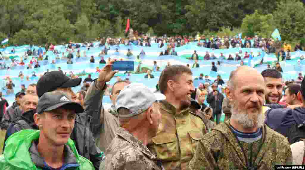 Лозунги "Хабиров, уходи!", "Хабаровск мы с тобой!", "Куштау, яшә!" тут скандируют, выстроившись в живую цепь длиной в 4 км и схватившись за триколор — только не российский, а башкирский.