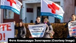 "Заплатите за группы риска", "Заплатите за COVID", "Отстоим честь и достоинство медиков", "Заплатите за страховку, мы не будем брать винтовку" — с такими плакатами вышли сотрудники медучреждений Можги.
