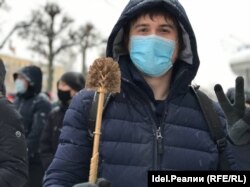 ЙОШКАР-ОЛА. Золотой ёршик у одного из протестующие в Йошкар-Оле.