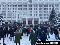 САМАРА. У здания правительства в Самаре начались столкновения протестующих и полиции. Последние пытаются выдавить граждан с площади на каток.