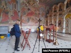 Параллельно с пикетом, с 13 до 15 часов, в храме в честь святой блаженной Матроны Московской на ул. Победы, 93А проходила молитва памяти, на которой зачитали имена жертв советских политических репрессий.