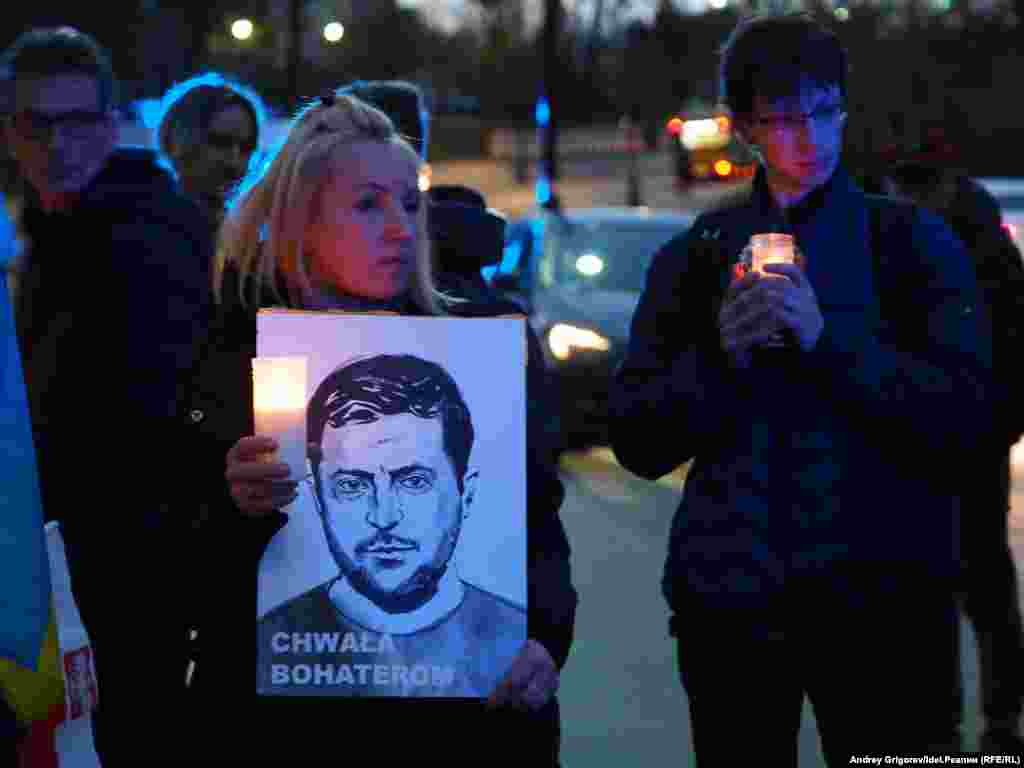По завершении акции у российского посольства часть протестующих с зажженными свечами переместилась к посольству Украины.
