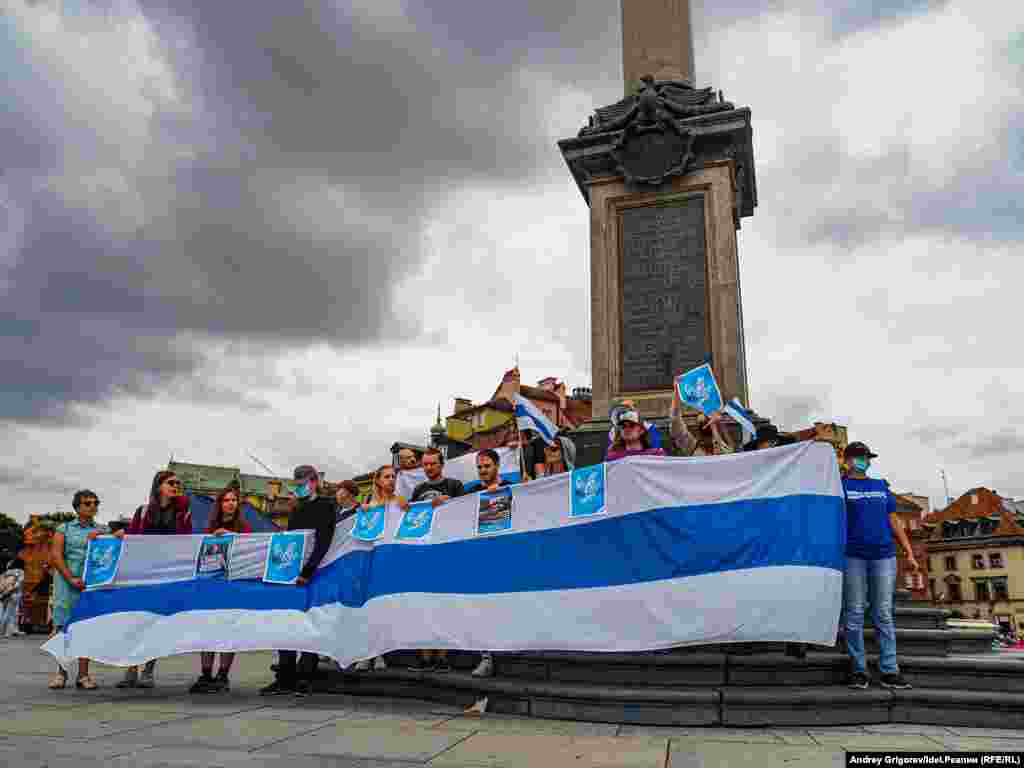 На антивоеную акцию в центре Варшавы вышли два десятка россиян.
