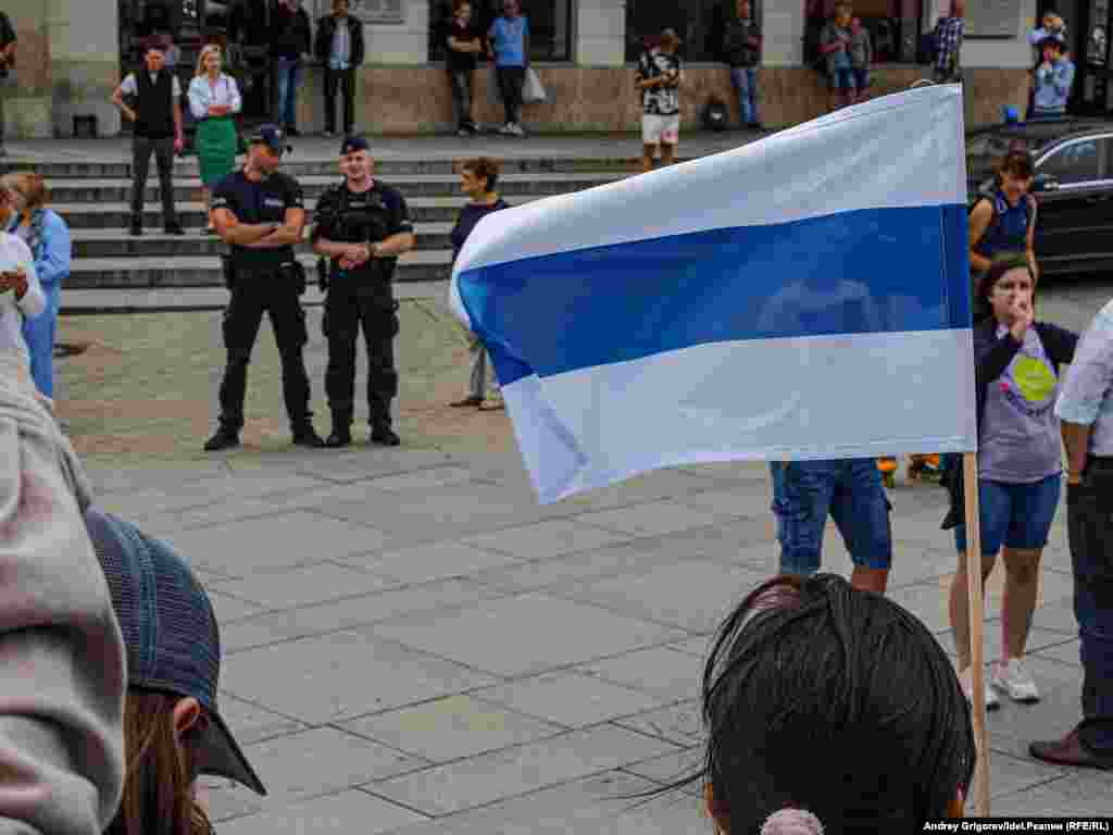 На антивоеную акцию в центре Варшавы вышли два десятка россиян.
