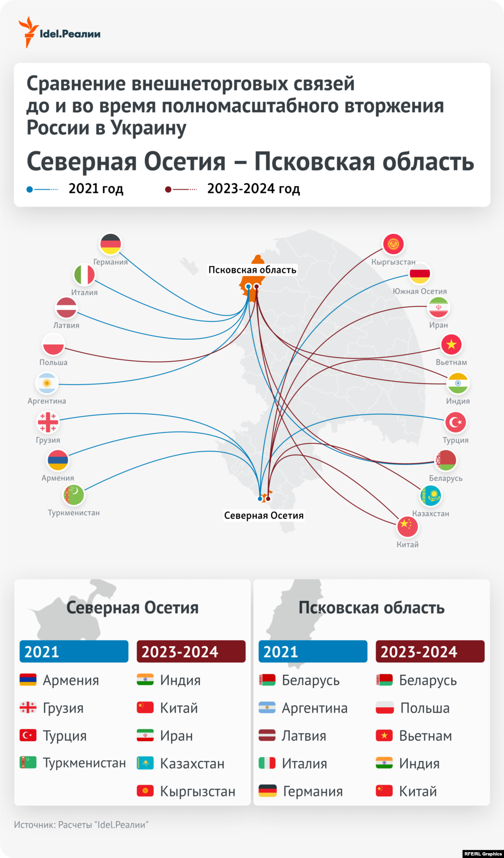 "Idel.Реалии" проанализировали, как полномасштабная война России против Украины повлияла на внешнеэкономические связи 14 регионов. Половина из них — национальные республики, другая половина — области. В исследование не вошли регионы, граничащие с Украиной.