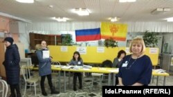 КАЗАНЬ. УИК №45. Как сообщают наблюдатели от КПРФ, четыре городских автобуса в разное время подвезли к участку организованную группу избирателей.