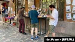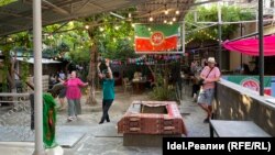 Уроженка Казани Юстина, разливавшая чай в "зоне для чилла", устроенной в осушенном бассейне, рассказала, что в перерыве между первым и вторым сабантуями в Ереване она участвовала в нескольких "домашних" встречах новой татарской общины, сформировавшейся из числа "релокантов": "Собирались на квартирах с подругами, один раз манты готовили, другой — треугольники, больше ста штук напекли!"
